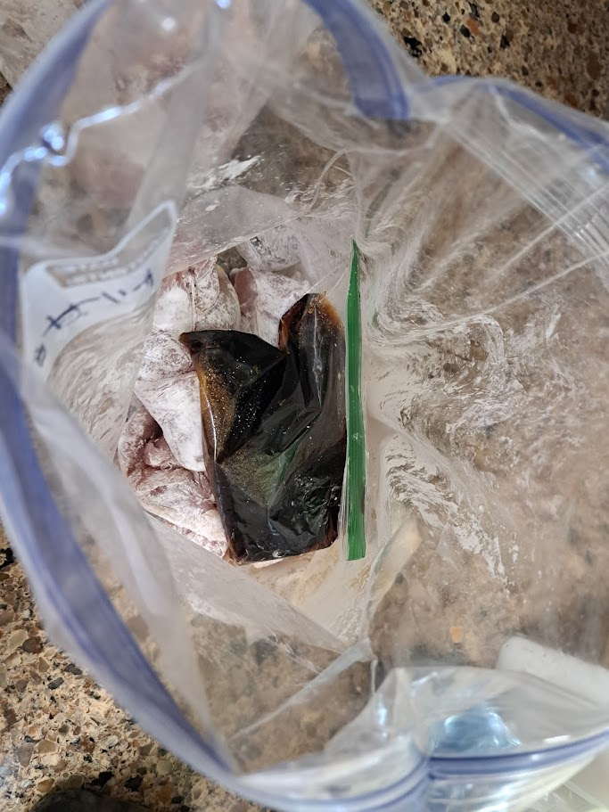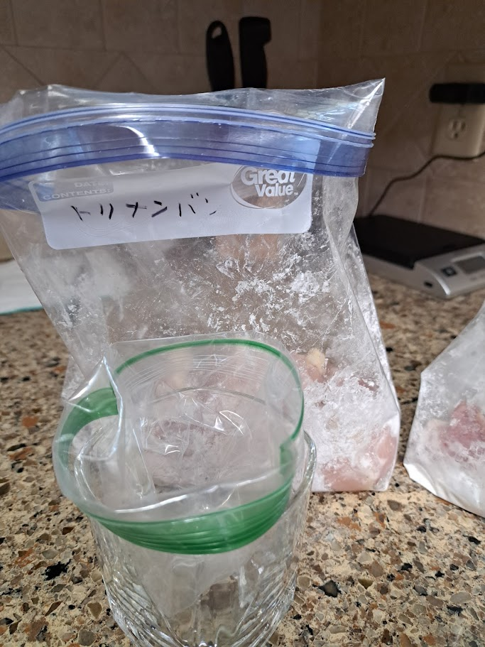 ジップロック(小)の中にたれが入っていて、鶏肉には片栗粉がコーティングされている状態で冷凍!